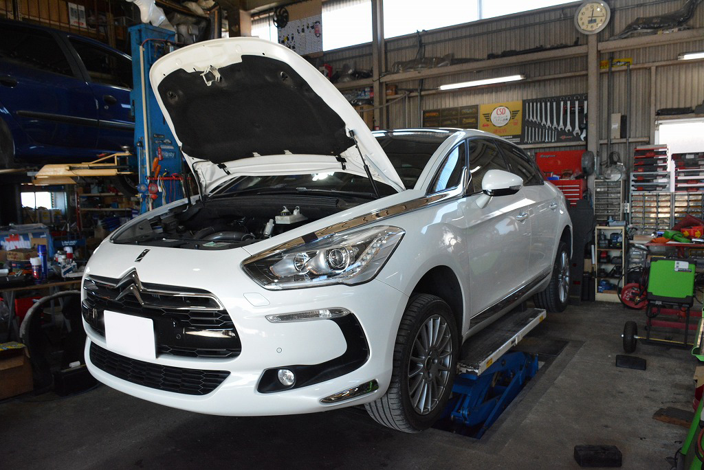DS5はエンジン始動と共に盛大な異音を発する為、自走では無くレッカー搬送での入庫となりました。 神戸にお住まいですので、だましだまし様子見ながら走行出来るというレベルの状況ではありません。 ...