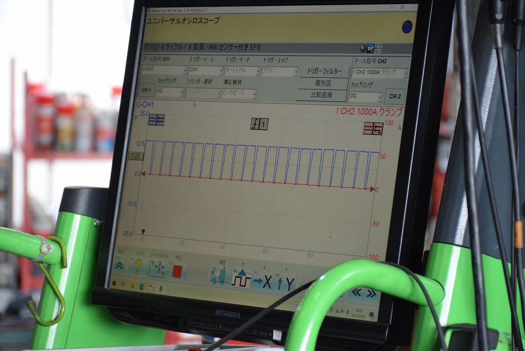 エンジン始動中の、ロービームを点灯している際にカメラをライトに向けて下さい。うまくピントが合う位置であれば、PWMの制御が画像に写ります。