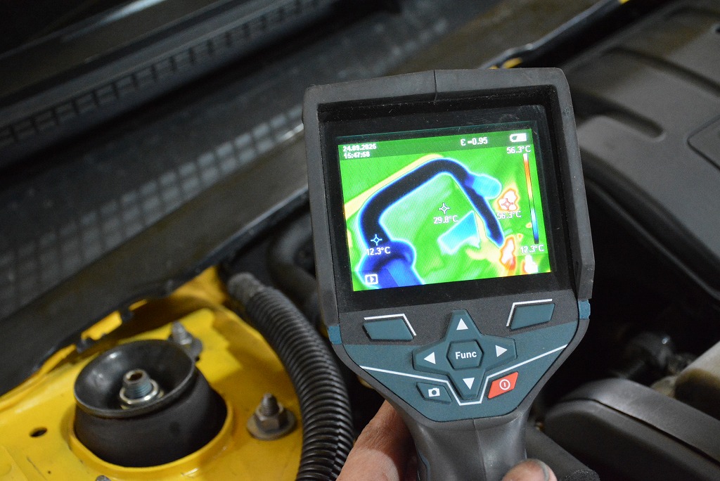 配管の温度がドンドン下がる事を確認し、エアコンシステムの機能改善に確かな手ごたえを持ちました。