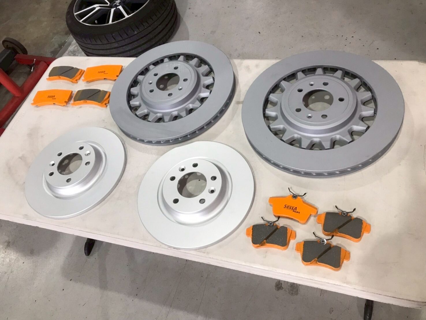 フロント380㎜の大きなブレーキローター・リヤブレーキローターとSessAブレーキパッドとの組み合わせを行います。