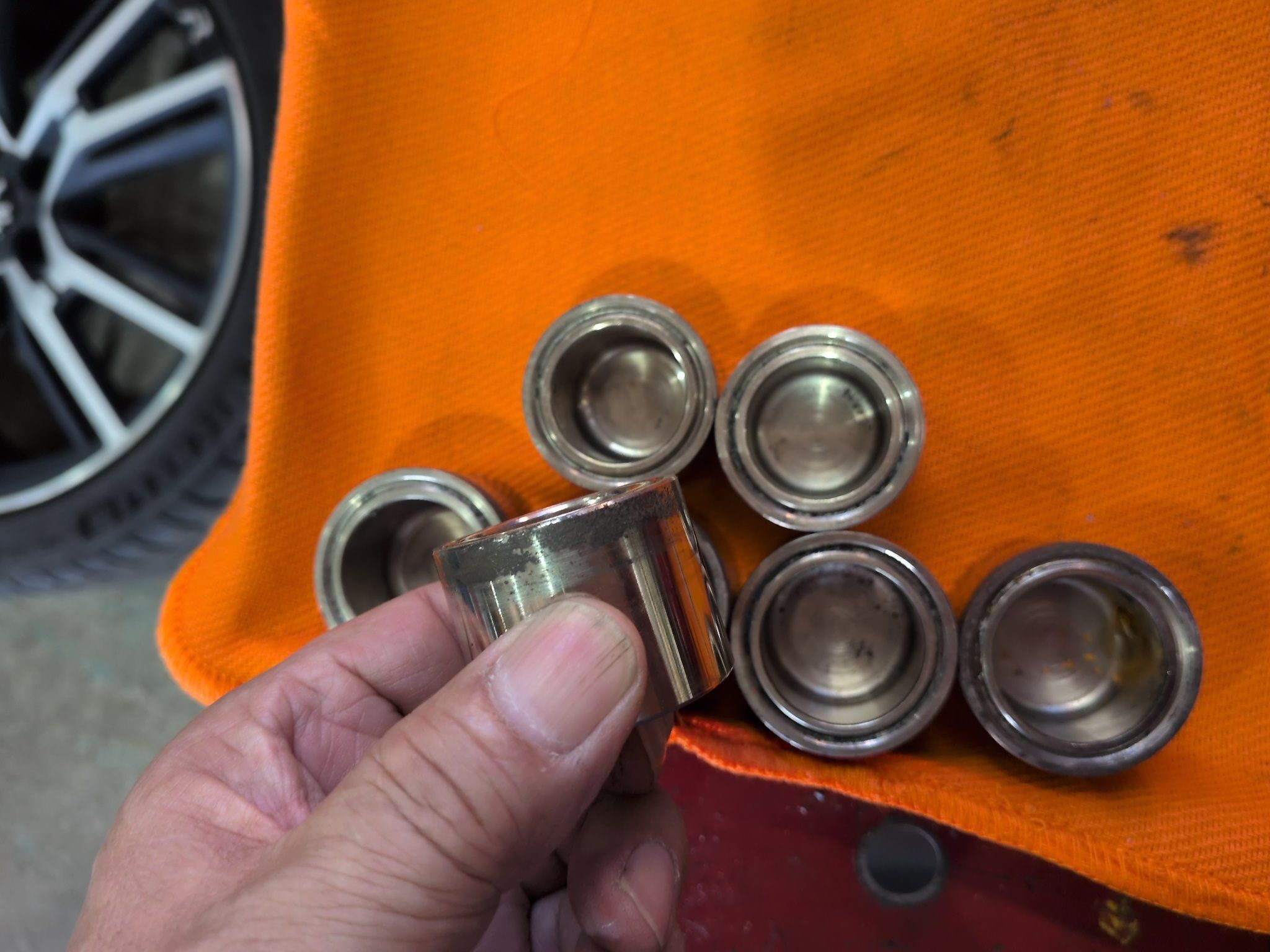 純正装着のアルコン製レーシングキャリパーはキャリパーピストンの状態が不安の為、キャリパーの分解も行います。
