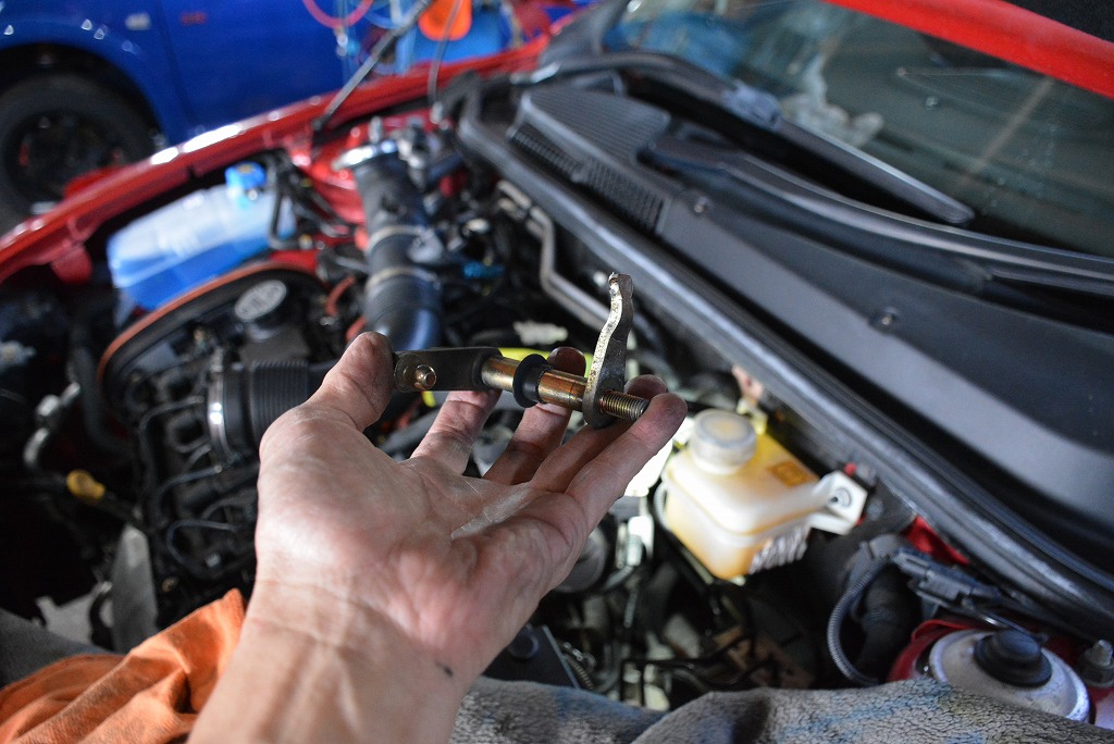 フィーリング悪化の原因は、エンジンルーム内・ギヤボックスの真上に備わるコントロールメカニズムにありました。