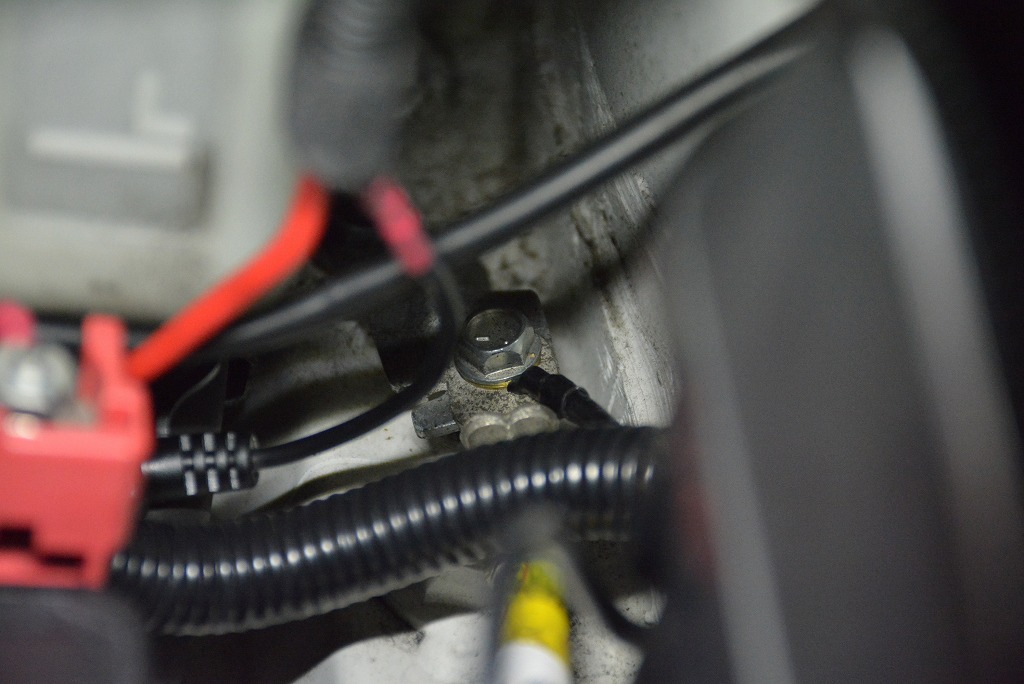 今回は、リザーブタンクの下側に位置する、既存のボディアースを使用しました。
