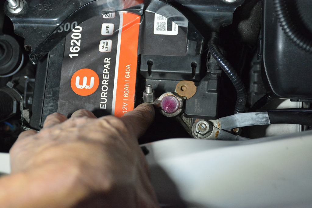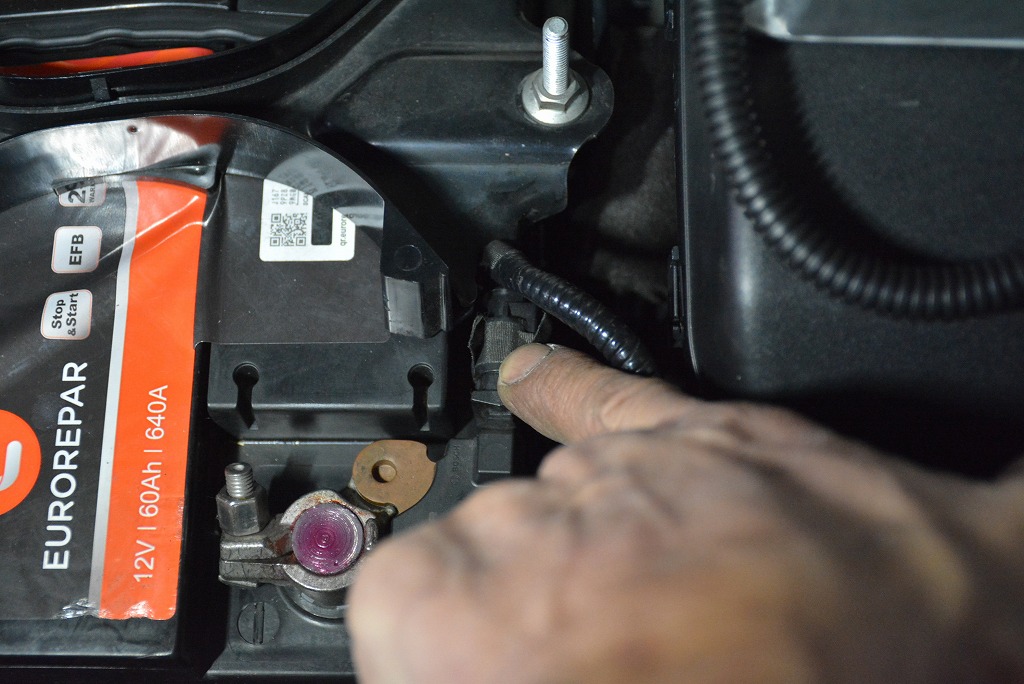 ボディやエンジンに接続されるアースケーブルとは別に、小さな電極コネクタが備わります。