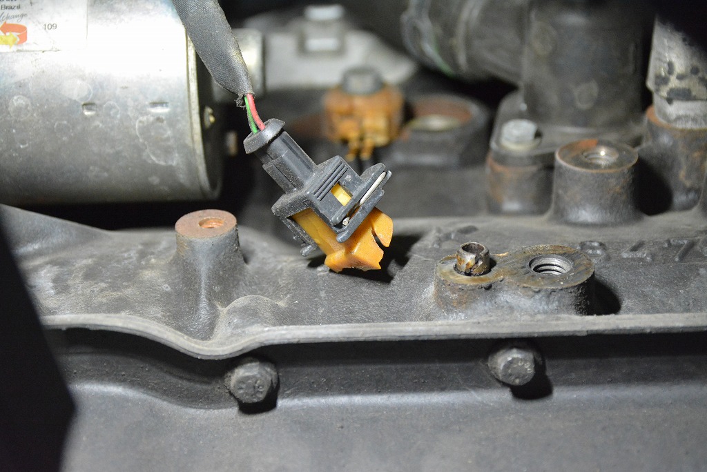 装着位置の直ぐ側に、エンジンのノッキングを検知する ノックセンサ が装着されています。