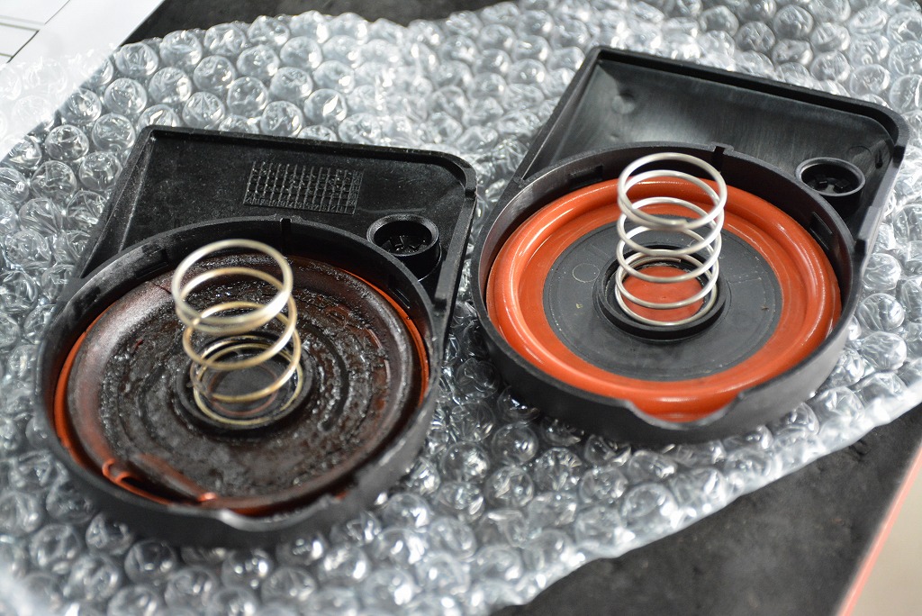 中にはダイヤフラムが入っていて、ゴム素材の劣化により破れたり、硬化したりと、色々な経年変化を起こしています。