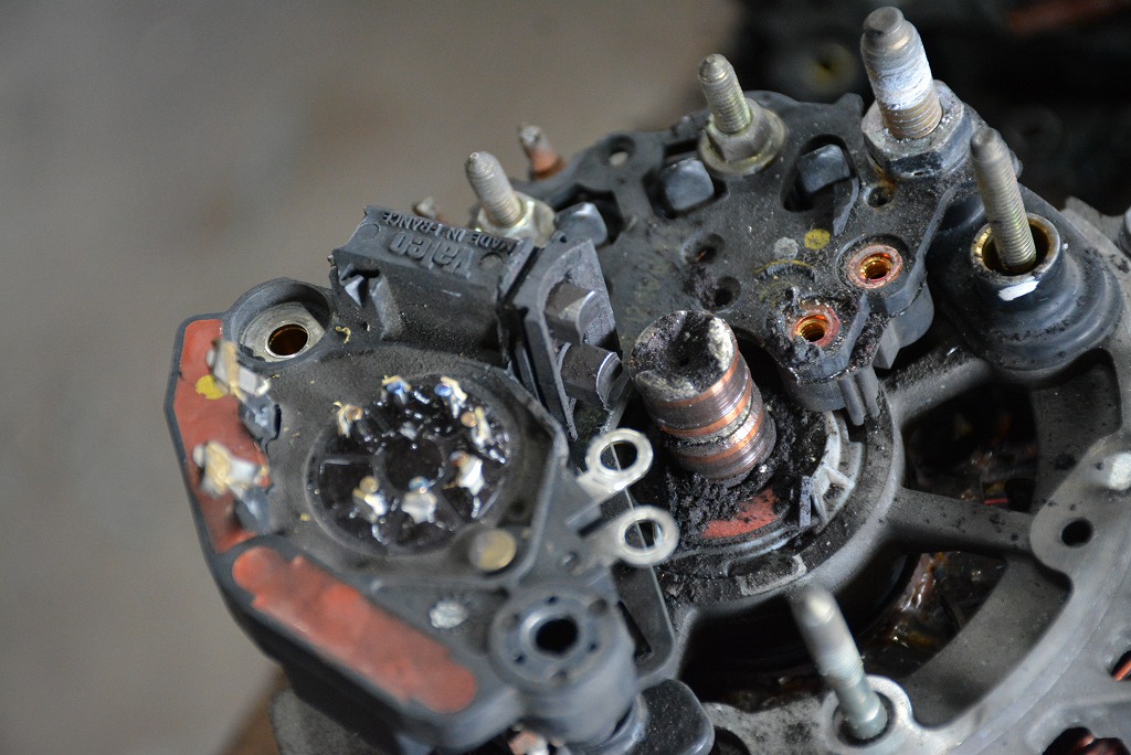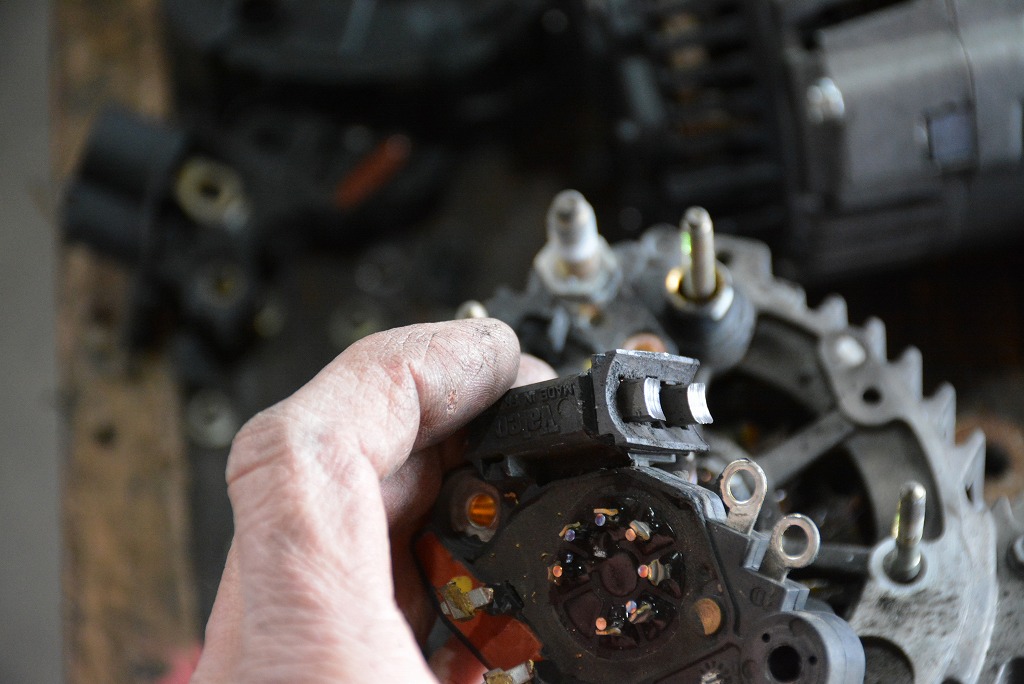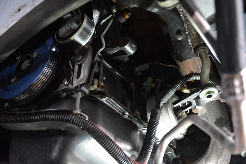 後期型のオルタネータが備わる当車輛ですが、敢えての前期型オルタネータを装着します。