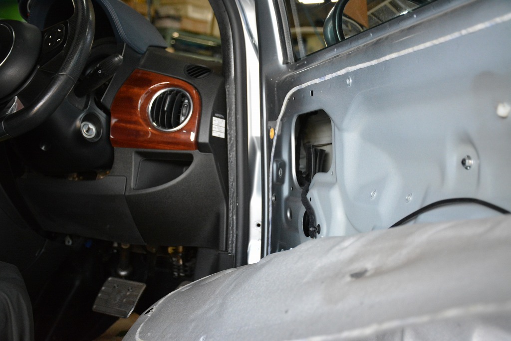 交換作業は、ドアトリムを外し、防水シートを捲り、ウィンドチャンネルをずらして行います。