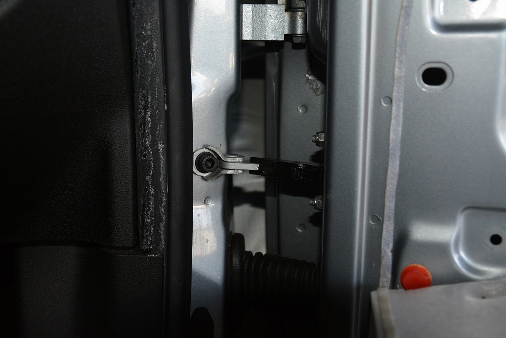 上下のヒンジの間に装着されていて、役割はドアの開き過ぎを制限する事です。