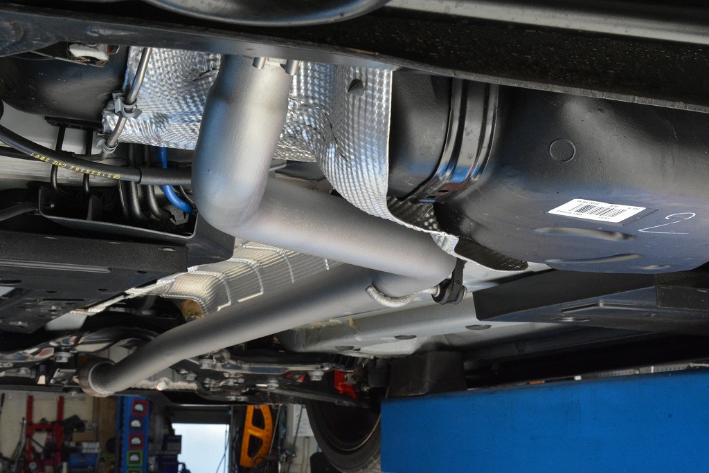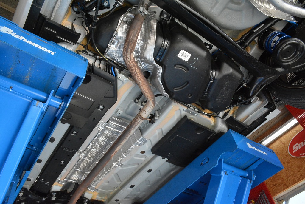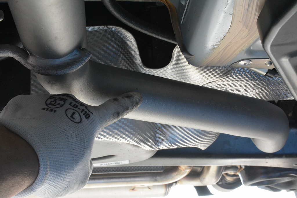 綺麗な状態の下回りに似つかわしくない、錆の目立つセンターパイプの状況。
