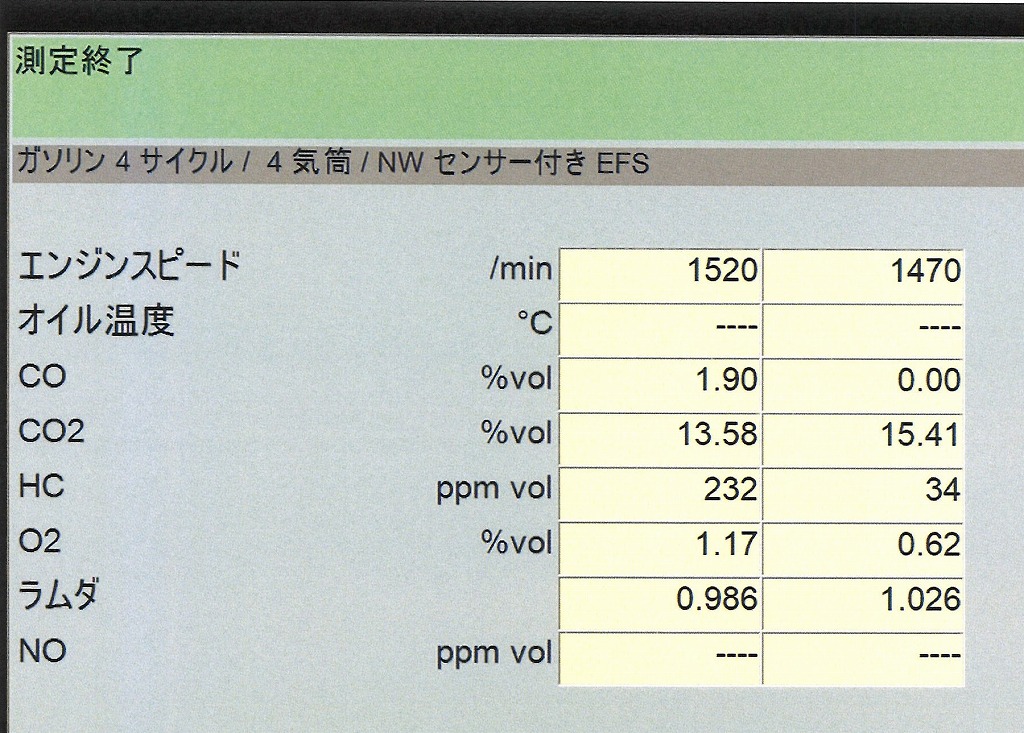 センサーの状態が悪い時の排出ガスからは、CO/HCの排出量が増えているのが分かります。