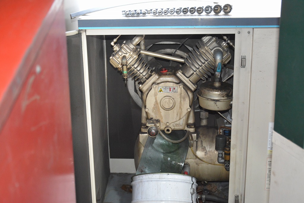 エアーコンプレッサのオイル交換を遂行中。(昨年末の光景です)