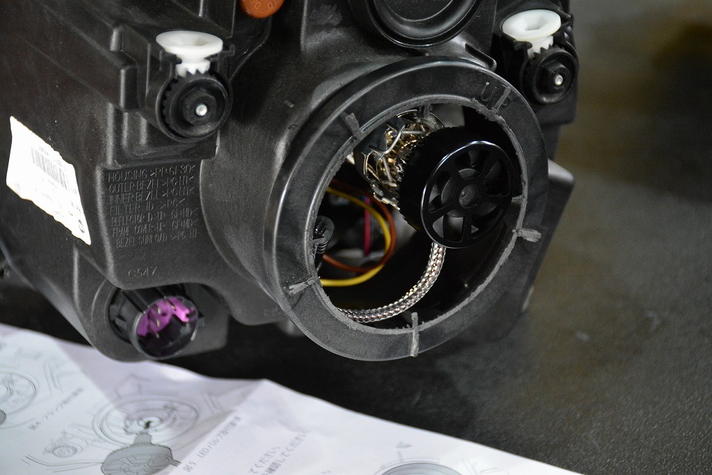 プロジェクタライトは、従来のLEDバルブとの相性が悪い事もある様でして、promina製は360°発光式のLEDバルブを採用しています。