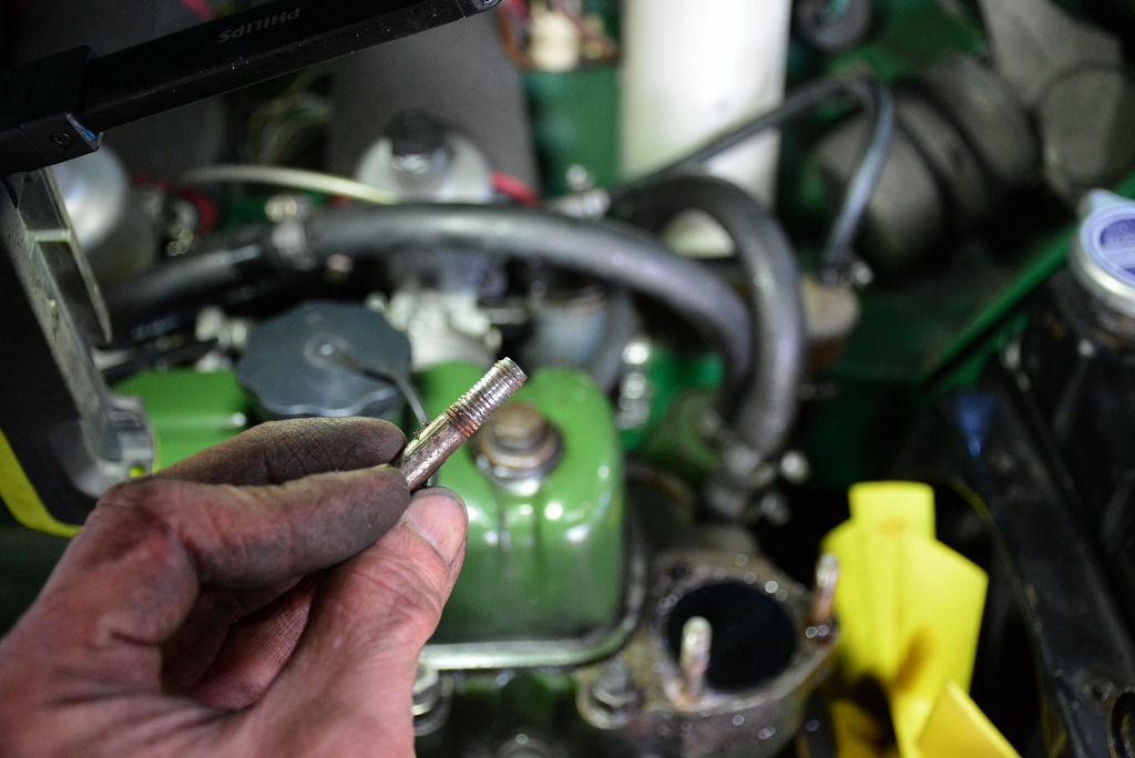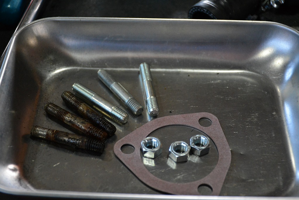 「どこかにスタッドボルト、あったはず」と思いながら部品庫を探して見つけました。
