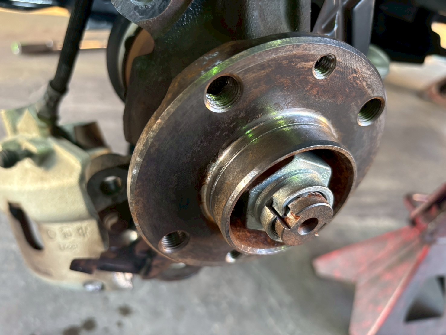 ドライブフランジは錆の温床。放置すればみるみる蓄積し、最後にはホイールがセンターボアに固着し、取り外す事が困難になります。