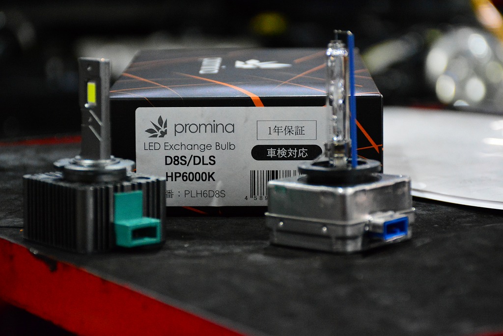 DS3に用いられる D8S 規格のHIDバーナーを、promina製LEDコンバージョンバルを使い、薄暗いHIDの照度を上げます。