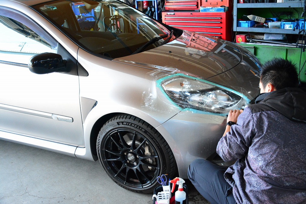 ヘッドライトのリペア~仕上げのフィルム施工を、ルーテシアで3台分。