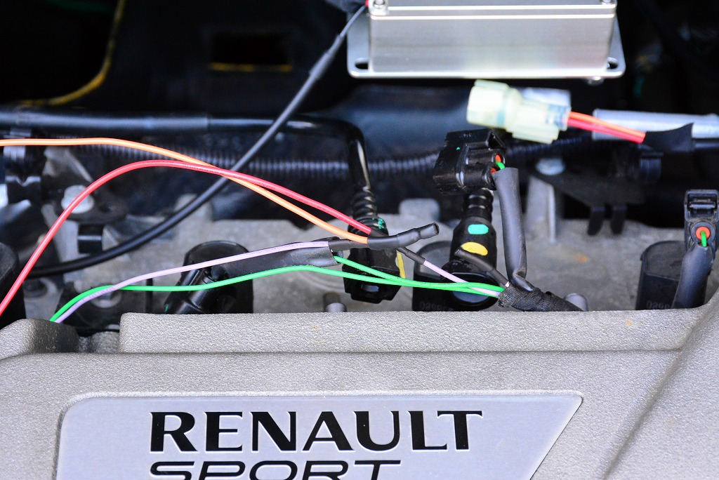 点火コイルの電源線に介入し、基本となるコイルの起動電圧を昇圧します。