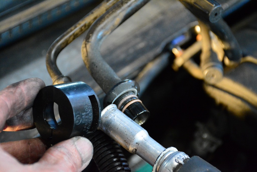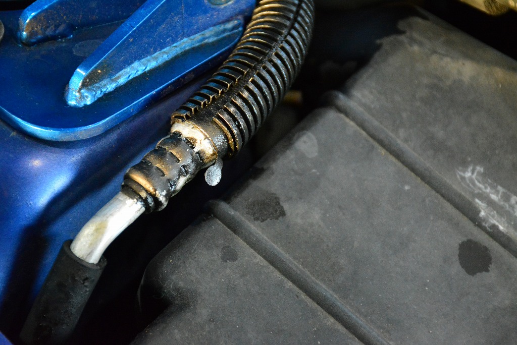 ガス漏れを起こしている箇所は、高圧ホースのエキパン手前に位置する屈折したゴムホースからでした。