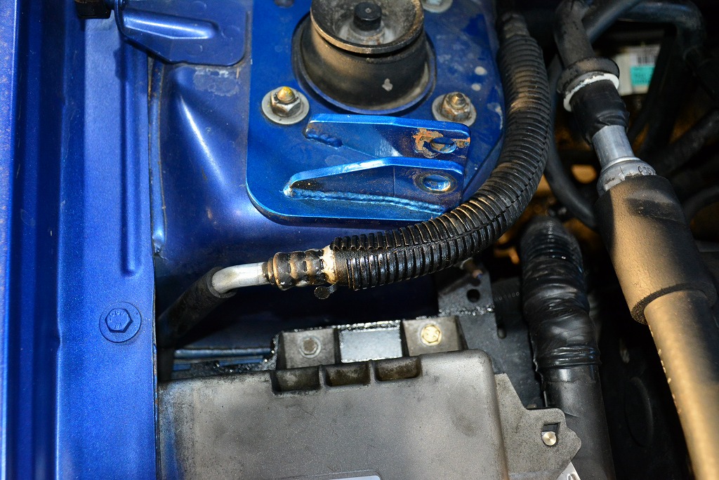 ECUのブラケットがこの直ぐ側にあるのですが、ベタベタになっていました。