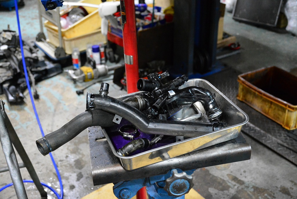 フライホイール交換にあたっては、ミッションを降ろす必要があり、そうなると水回りの消耗品を一斉交換する絶好のタイミングとなるわけです。