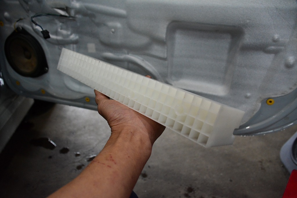 なんだろう?この部品と思いましたが、側面衝突時に強度を保つためのハニカムブロックである事がわかりました。