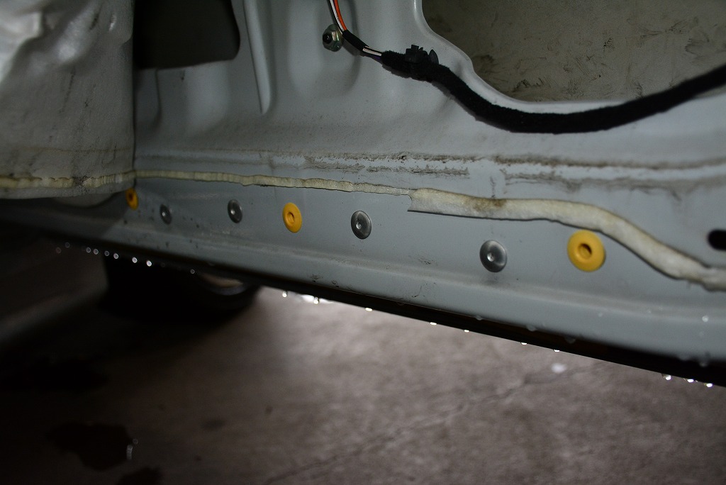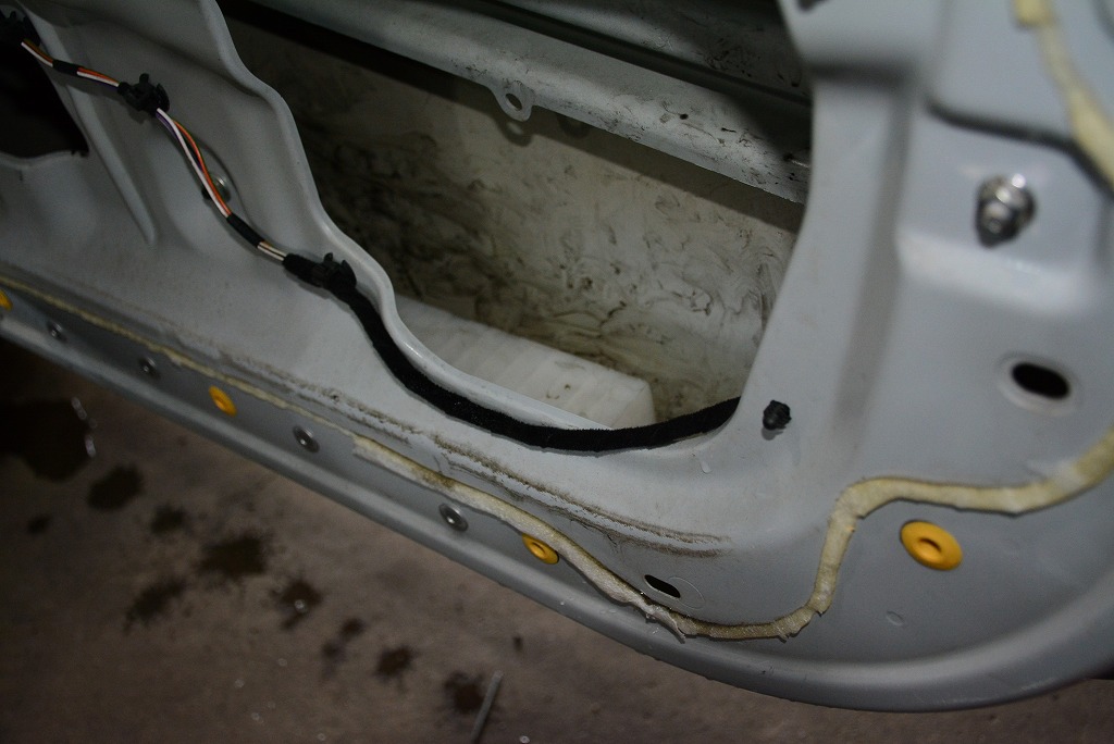 別件でドアトリムを外す作業があり、他にも気になる事があったので点検していると。なんじゃこりゃ?