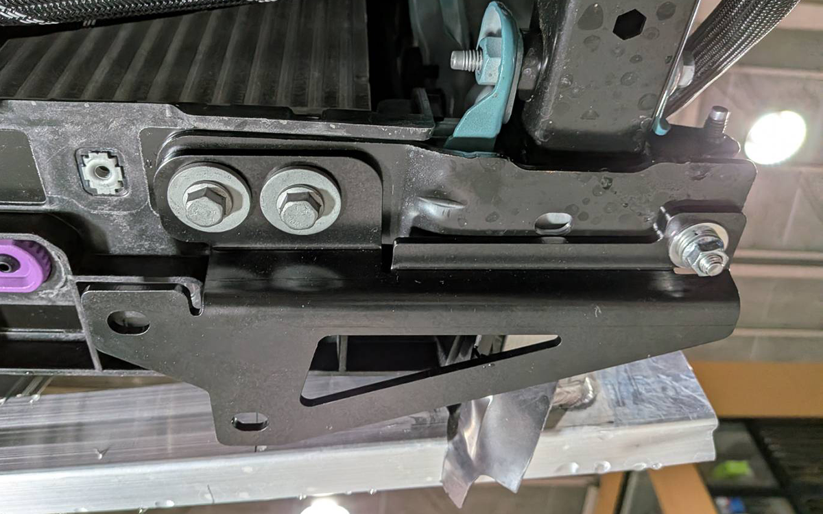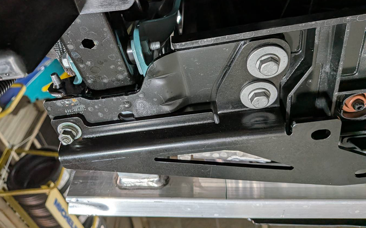 車両に装着されているボルトを使って、フロントブラケットを写真のように装着してください。