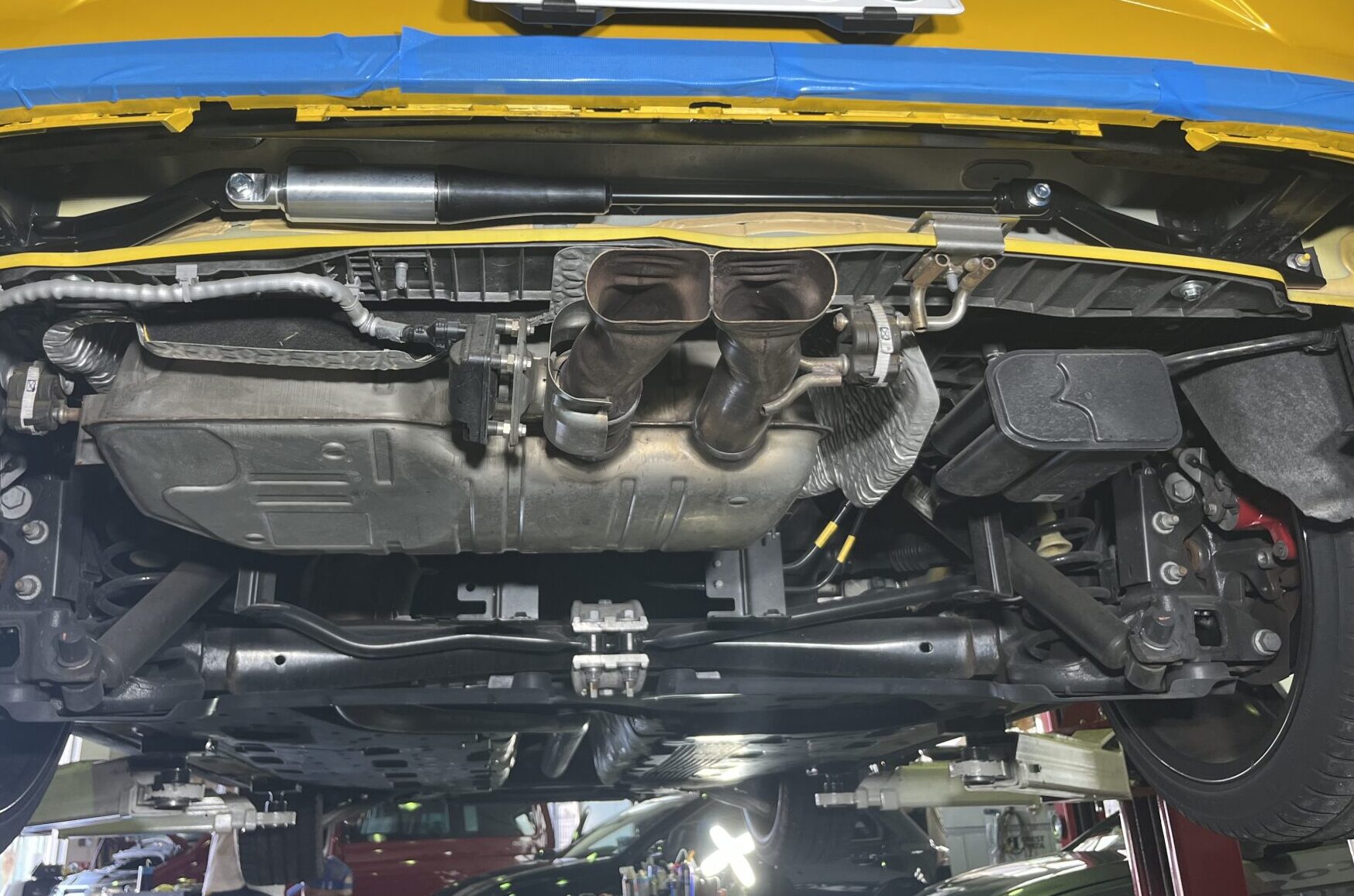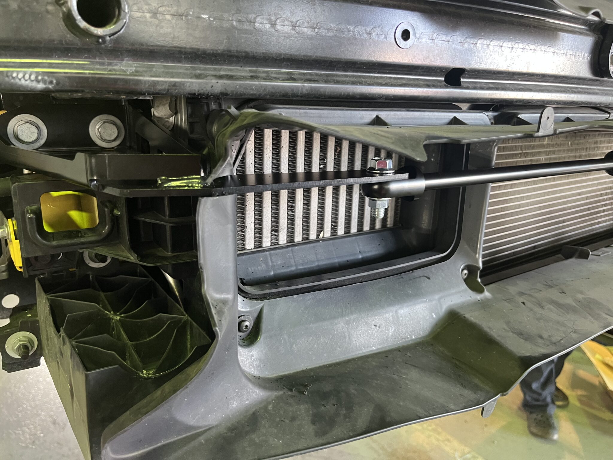 フロントバンパー内・リヤバンパー内に専用ブラケットを装着モーションコントロールビームを取付します。