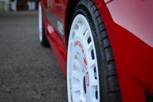 サスペションの進化も進行中のデモカー・アバルト595は、スフェリカルアッパーをC-ⅡタイプからN-1タイプに変更。アライメントの調整をおこないました。フェンダーに近いオフセットの為、フェンダーへの干渉...