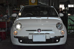 各部のメンテナンスにてお預かりをさせて頂いているFIAT500 ツインエアーです。 ヘッドライトを明るくする事を目的とし、純正のハロゲンライト→LEDへとコンバージョンを行います。 エンジンの...