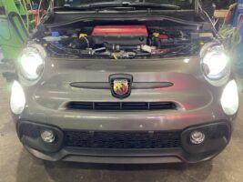 完成間近のアバルト595コンペツォーネは、ヘッドライトのハイビーム・ロービーム共にLEDバルブに変更を行いました。HIDバルブをLEDへの変更には、フロントバンパーを外し左右のヘッドライトを外す必要が...