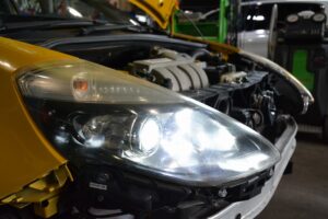 ご新規のお客様よりメンテナンスのご依頼と合わせて、ヘッドライト周りの視認性向上を目的としたカスタマイズをご依頼いただきました。 標準でHIDヘッドライトを備えたモデルですが「夜間の視認性を向...