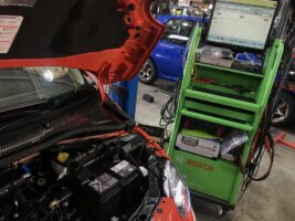 12ヶ月点検にてお預かりをさせて頂いている124スパイダーは、作業が完了し完成検査を行なっています。 検査の一環で、オシロスコープを通しての点検を実施しています。 オシロスコープはボッシュ...