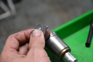 エアコンコンプレッサの不具合から、コンプレッサ交換を行い、組み付けを進めています。 分解時に「あ~、どう対処するかな?」と思った部分。 VVT ソレノイドの固定金具です。割れているのですよね~...