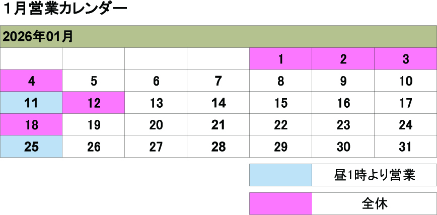 新年の営業は5日(月)よりスタートさせて頂きます。