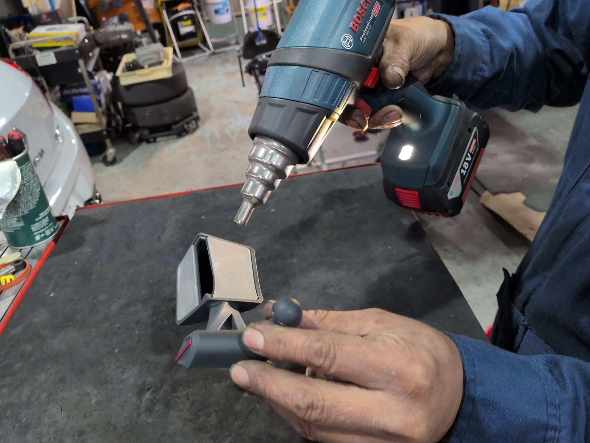 付属のクリーナーで貼り付け面の脱脂を行い、強力な両面テープでの取付けを行います。外気温度ににも寄りますが、ヒートガンで温めての貼り付けが粘着状況も良く確実かと思います。