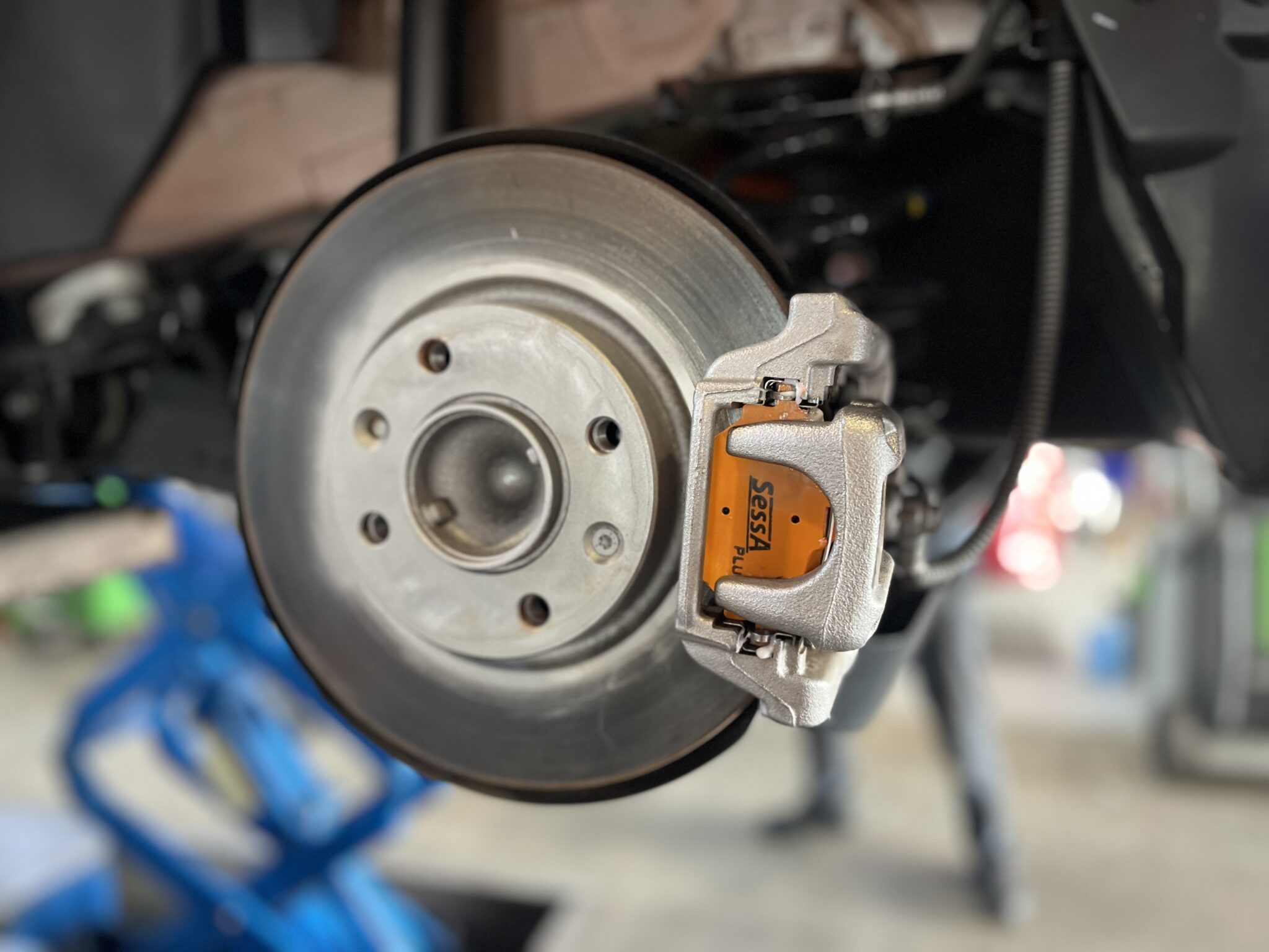 ブレーキフィールも大変コントロールが行いやすく、ノーマルパッドのブレーキペダルに踏力を掛け始めよりガツンと効きすぎノーズダイブを気になさる方も多いかと思います。SessAブレーキパッドは、ブレーキペダルに掛ける踏力により制動が掛かり始め自然なブレーキングをご提供します。