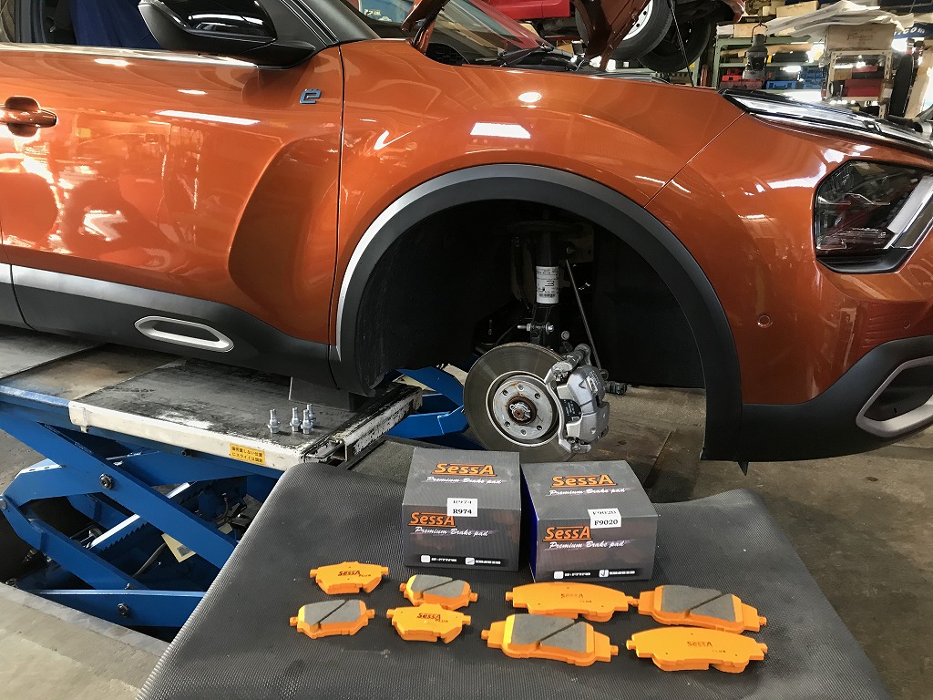 CITROËN Ë-C4用のSessAブレーキパッドのご案内です。前後とも制動力を高めた特殊素材を使用。ブレーキバランスを損なうことなく、低ダストと制動力を両立しております。ブレーキダストがほとんど出ません。長寿命でローターにも優しいですよ。輸入車オーナーであれば誰もが気になっているであろうブレーキダストを最小限に軽減します。